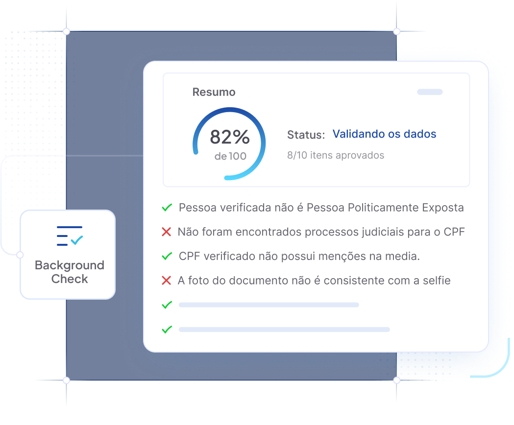 Valide clientes com reconhecimento facial, Background Check, Device Scan e muito mais